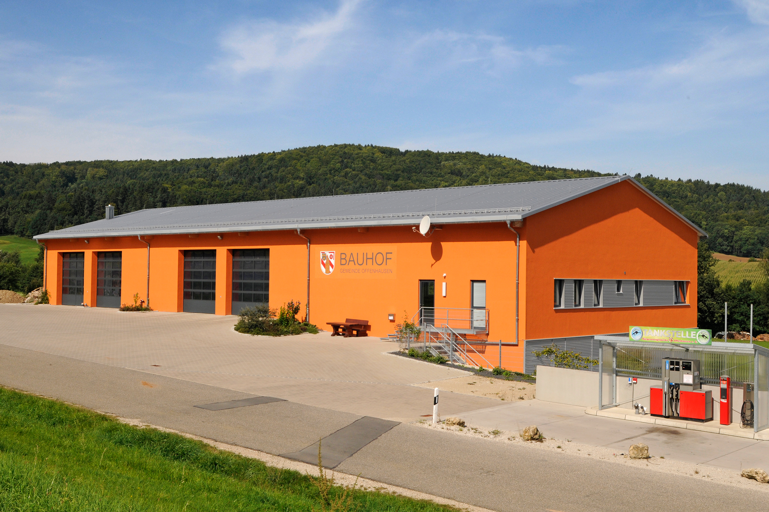 Der Bauhof verfügt über eine großzügige Halle, die auch als Eventlocation genutzt werden kann. Darin integriert sind mehrere Sozial- und Sanitärräume sowie eine Werkstatt. Der Feuerwehr stehen gut 550 Quadratmeter für ihre Einsatzfahrzeuge, eine Waschhalle, eine Schlauchpflegeeinrichtung, eine Atemschutzwerkstatt, einen Schulungsraum für 50 Personen, Lagerräume, Umkleiden und Büros zur Verfügung. Des Weiteren gibt es noch einen Stellplatz für den Winterdienst der Gemeinde.