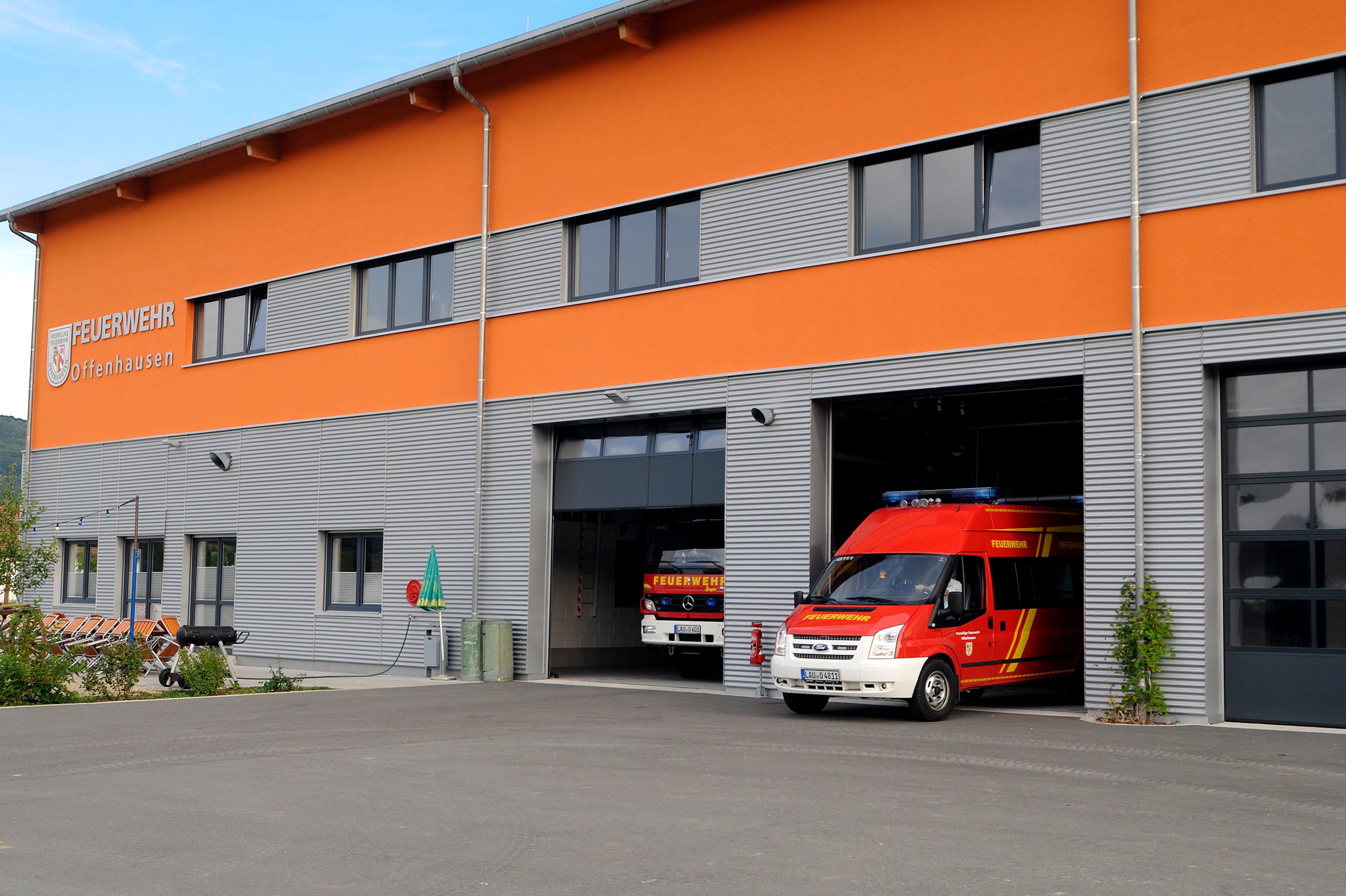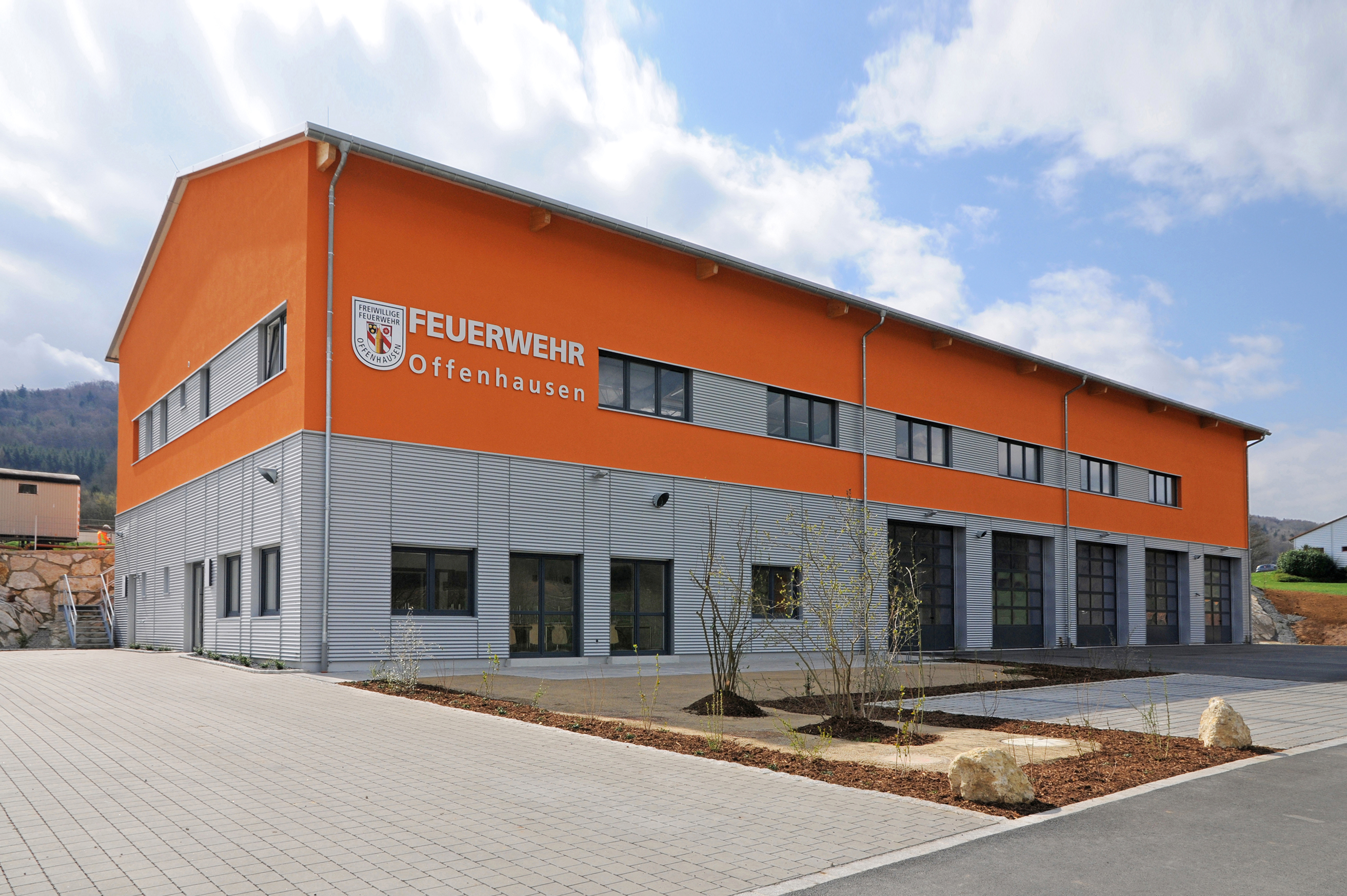 Das neue Feuerwehrhaus und der Bauhof mit Tankstelle liegen direkt im Gewerbegebiet Offenhausen an einem nach Westen abfallenden Hang. Das zweistöckige Gebäude mit 44 mal 18 Metern Grundfläche gliedert sich in zwei Bereiche: Im ersten Stock befindet sich der Bauhof, im Erdgeschoss die Feuerwehr. Die Erschließung des Bauhofs erfolgt über eine Straße oberhalb, die Feuerwehr ist über eine extra angelegte Stichstraße unterhalb erreichbar.