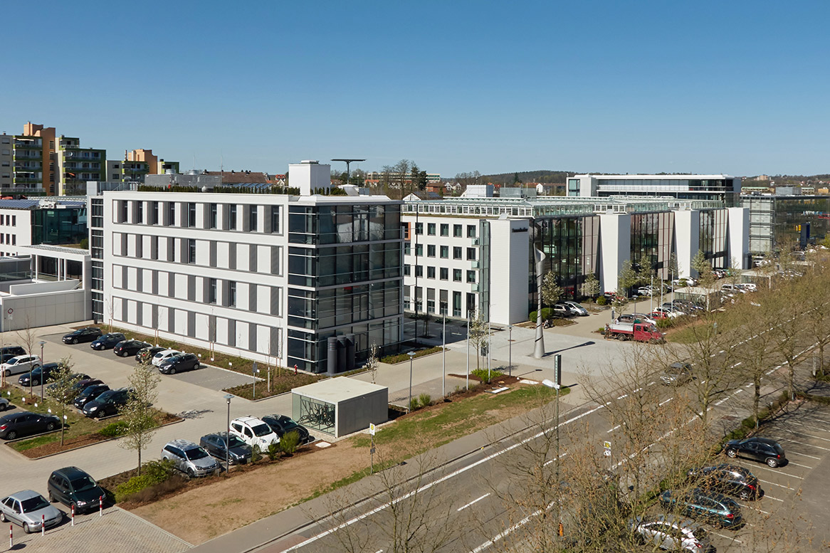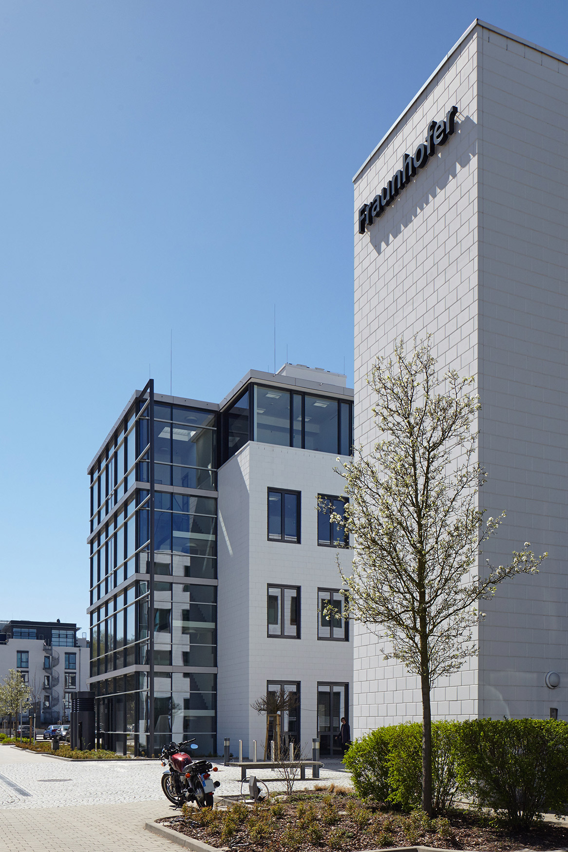 Die Fassade aus KS-Fasenstein, Glas und Stahl verleiht dem Fraunhofer-Zentrum eine elegante Sachlichkeit.