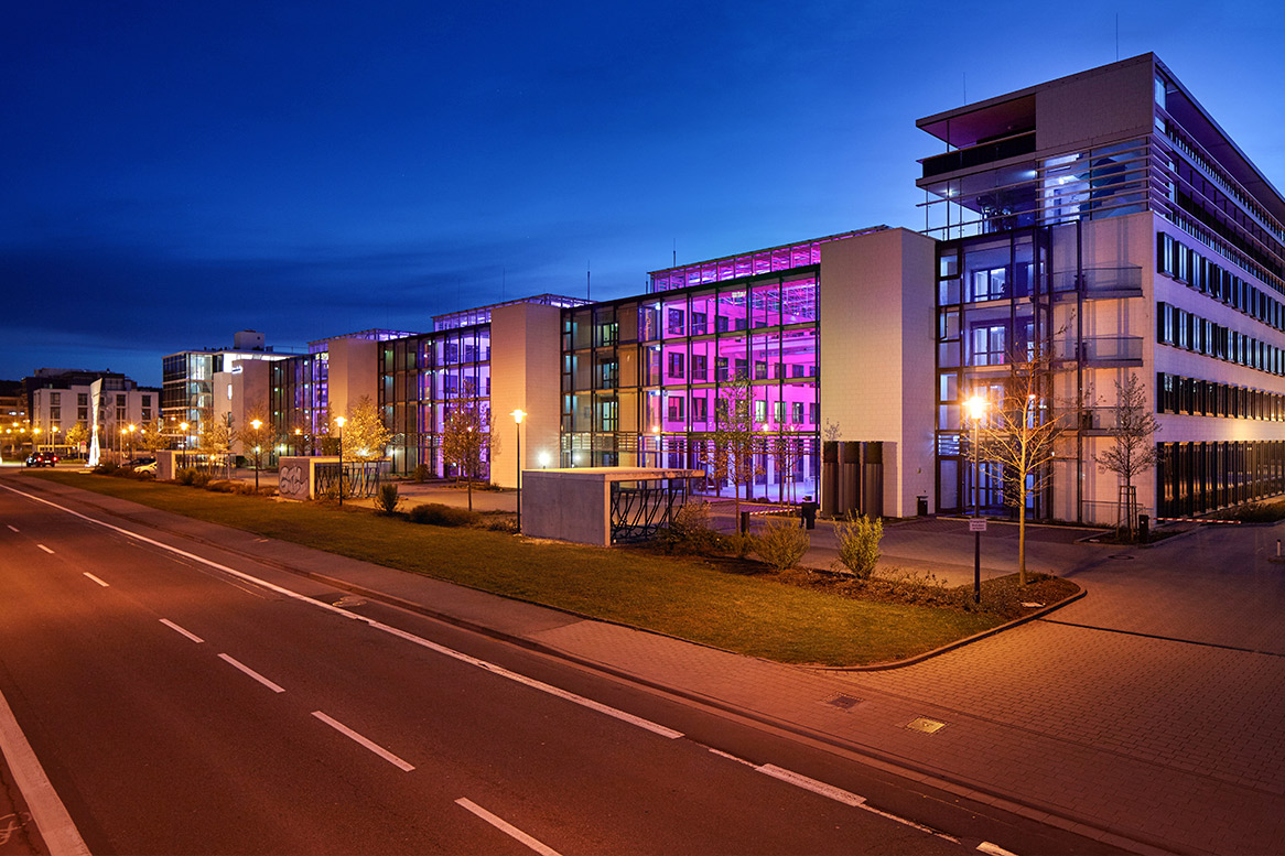 Durch die Nachbarschaft zur Universität soll die Zusammenarbeit der Einrichtungen gestärkt werden, damit am Standort Kaiserslautern noch schneller innovative, hoch technisierte Produkte und Dienstleistungen entwickelt werden können. Die Institute bestehen aus je drei Gebäuderiegeln, die durch verglaste Innenhöfe miteinander verbunden sind. Dort befinden sich Seminarräume, Speisesaal, Cafeteria, Vortragssaal, Bibliotheken und vieles mehr. Laut Projektleiter Reinhard Hens von Horinek Weber ASPLAN Architekten soll das Gebäude Kommunikation förmlich herausfordern.