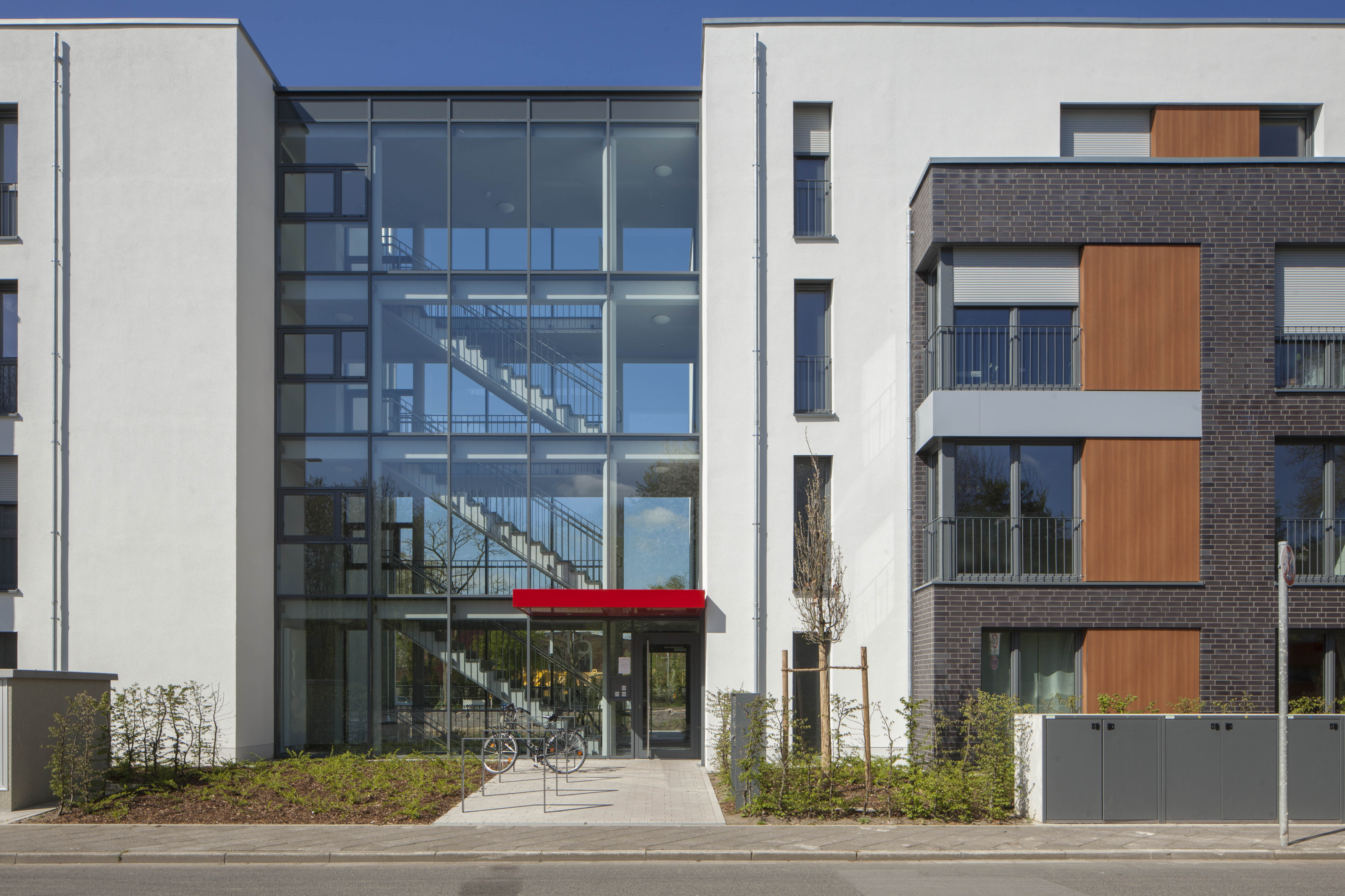 Das nach ökologischen, energieeffizienten und sozialen Aspekten entworfene Gebäudekonzept bietet verschiedene Wohnungstypen, die von Singlehaushalten mit 55 m² Wohnfläche bis zu 106 m² großen Vierzimmerwohnungen für Paare und Familien reichen. Um einen hohen Wohnkomfort genießen zu können, sind die Passivhäuser nach dem Prinzip des Durchwohnens barrierefrei und mit offen gestalteten Grundrissen konzipiert. Alle Wohnungen werden über großzügig bemessene Aufzüge erreicht und besitzen einen Balkon bzw. eine Terrasse mit Gartenanteil.