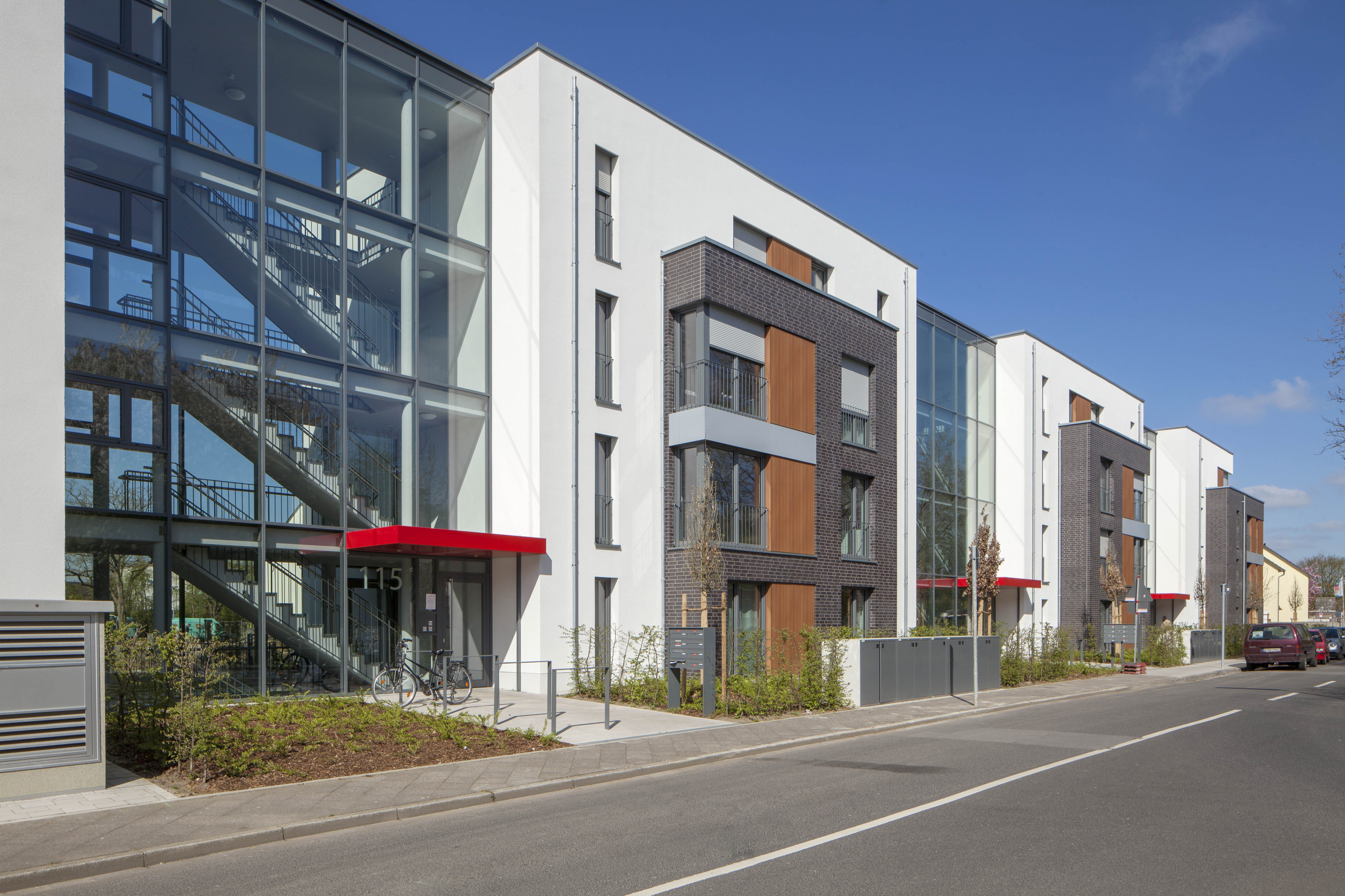 Aus einem Gutachterverfahren, an dem sechs Architekturbüros teilnahmen, gingen die Düsseldorfer HGMB Architekten als Sieger hervor. Architekt Dipl.-Ing. Richard Henning: „Die bestehenden Wohnungsbauten aus den 30er Jahren wurden abgerissen. Eine Sanierung ihres energetischen und funktionalen Zustands kam aus wirtschaftlichen Gründen nicht infrage. Vor diesem Hintergrund haben wir ein Konzept für die Realisierung eines Wohnquartiers mit Passivhäusern entwickelt.“