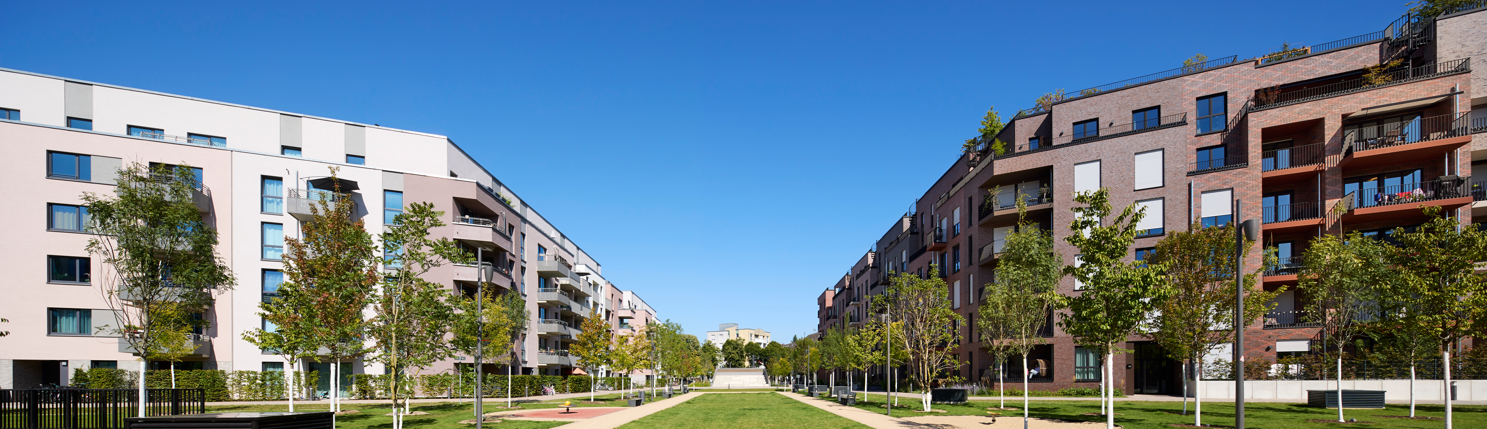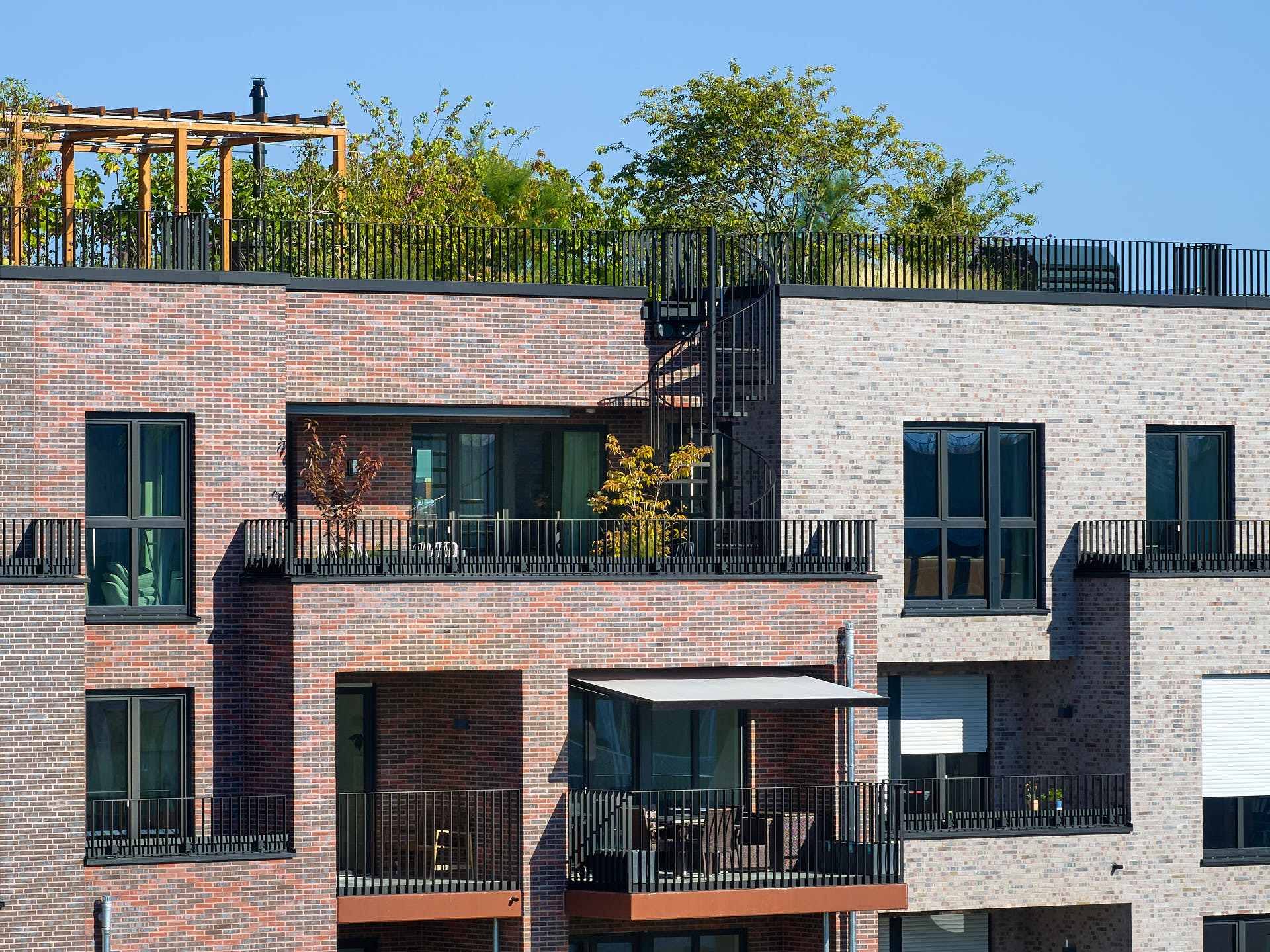 Der Baukörper selbst gliedert sich in vier Gebäuderiegel: drei davon sind sechsgeschossig, einer fünfgeschossig. Durch diese Staffelung entsteht nicht nur eine Differenzierung in der Höhenentwicklung, sondern auch ein räumlich ausgewogenes Gesamtbild mit ausreichender Belichtung des Innenhofs. Durch die Staffelung in den oberen Etagen entstanden trotz wiederholender Geste individuelle Strukturen, da Tiefe und Breite der Rücksprünge variieren. Eine gestalterische Spannung bei gleichzeitig wirtschaftlicher Bauweise entstand. „Wir sind immer bestrebt, einfach zu bauen“, sagt Heimowski. „Damit ist nicht monoton oder einfallslos gemeint, sondern effizient, klar und ressourcenschonend.“