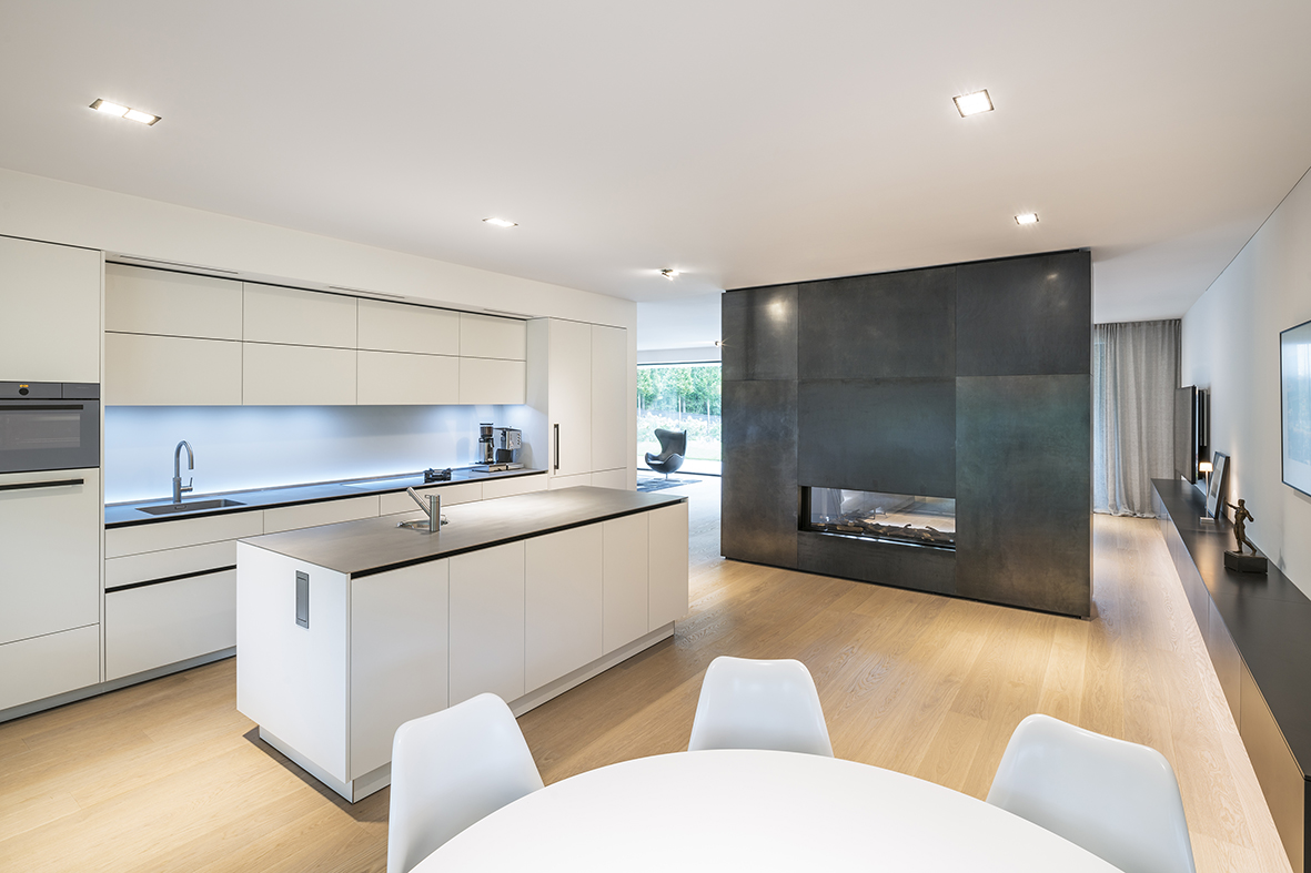 An den Südhängen des Taunus, rund 20 Kilometer westlich von Frankfurt am Main, liegt Bad Soden mit rund 23.000 Einwohnern. Dass das Städtchen als Wohn- und Arbeitsraum heute so beliebt ist, liegt unter anderem an seiner Geschichte als Heilbad mit berühmten Gästen aus Politik und Hochadel. Hier plante das renommierte Frankfurter Architekturbüro Hollin + Radoske zunächst den Umbau eines alten Gebäudes, doch schnell zeigte sich, dass die Wünsche der Bauherren damit nur unzureichend hätten erfüllt werden können. Also rollten bald die Abrissbagger an, um die Fläche frei für ein neues, größeres und zeitgemäßes Wohnhaus zu machen.