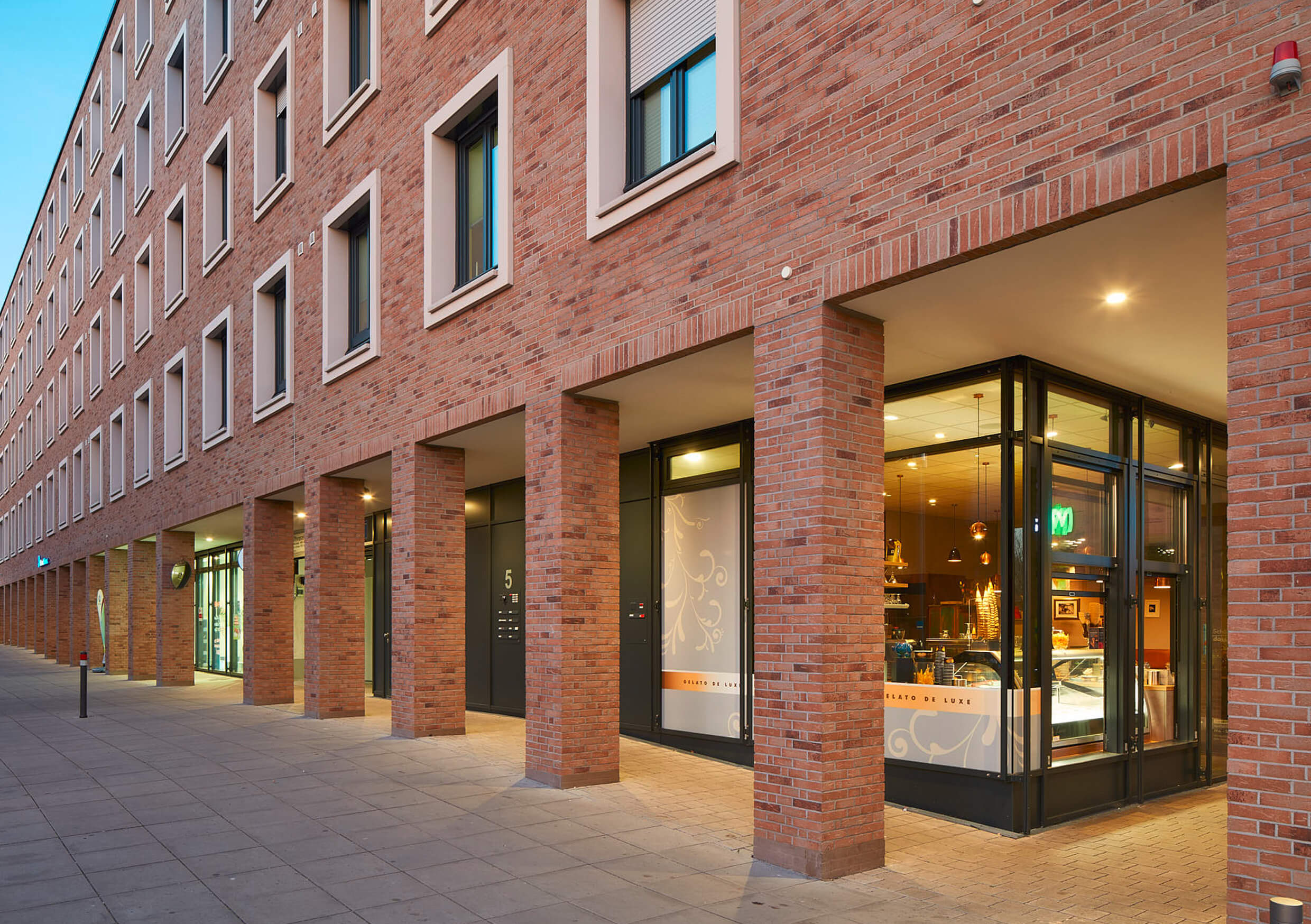 Für das letzte noch freie Baugrundstück im Scharnhauser Park sollte ein repräsentatives Gebäude entwickelt werden, das sich perfekt in die bestehende Bebauung einfügt. Deshalb schrieb das Siedlungswerk einen Wettbewerb für ein modernes Wohn- und Geschäftshaus aus, den das renommierte Architekturbüro Baumschlager Eberle aus Lustenau (Österreich) für sich entscheiden konnte – mit einem innovativen Konzept, das gekonnt zwischen öffentlicher Nutzung und privaten Bereichen vermittelt. „An jedem Standort treffen wir auf neue Herausforderungen, für die wir natürlich die jeweils beste Lösung finden wollen“, berichtet Christoph Welz, Leiter der technischen Projektentwicklung der Siedlungswerk GmbH. „Aufgrund der sehr verkehrsreichen Lage haben wir für den Scharnhauser Park ein massives Gebäude geplant, das höchste Ansprüche an den Schallschutz erfüllt und in der Lage ist, verschiedene Alters- und Interessengruppen unter einem Dach zu vereinen.“