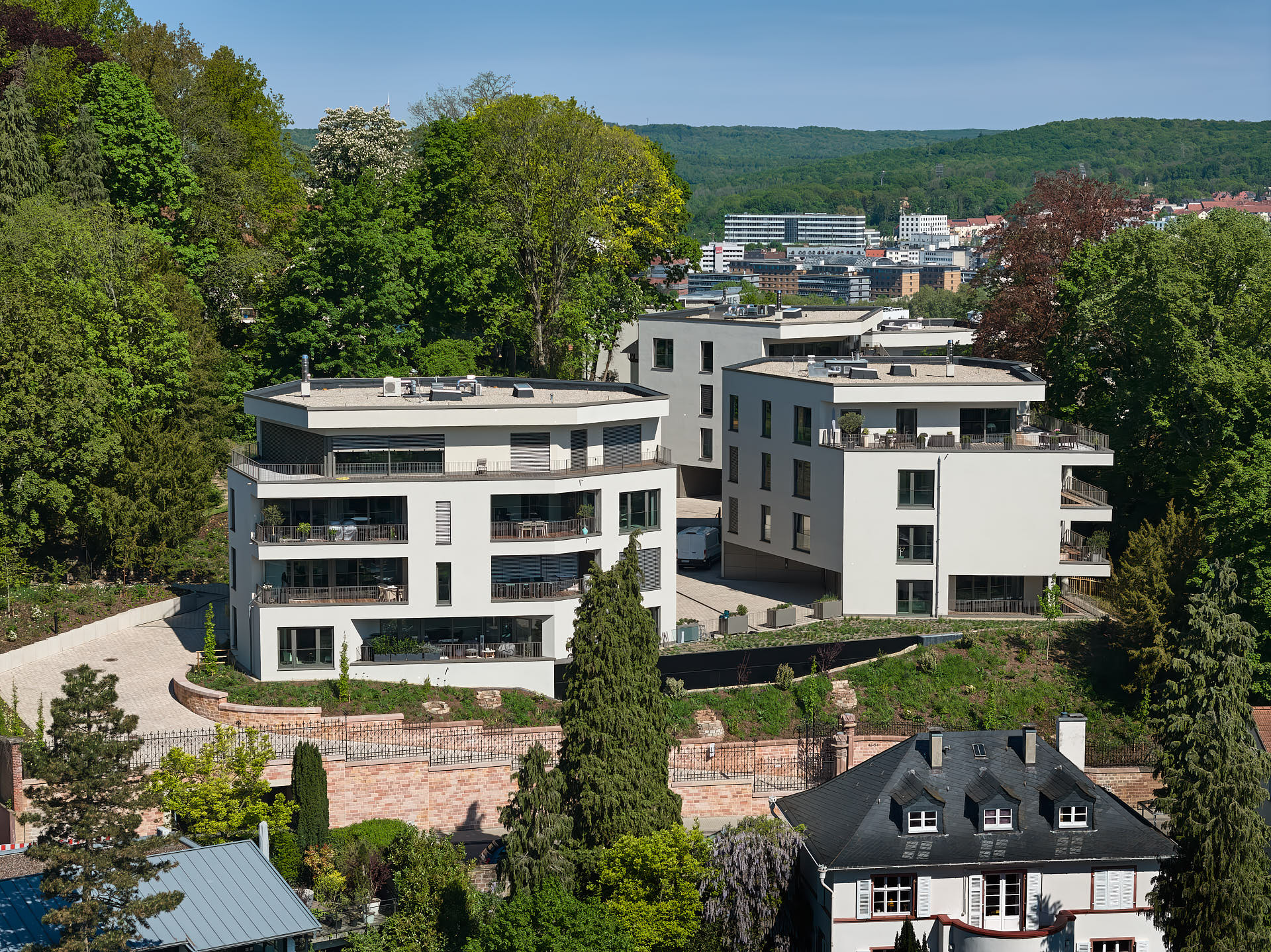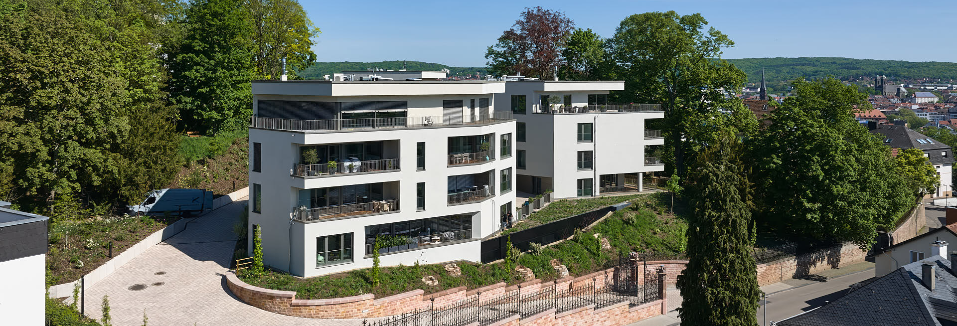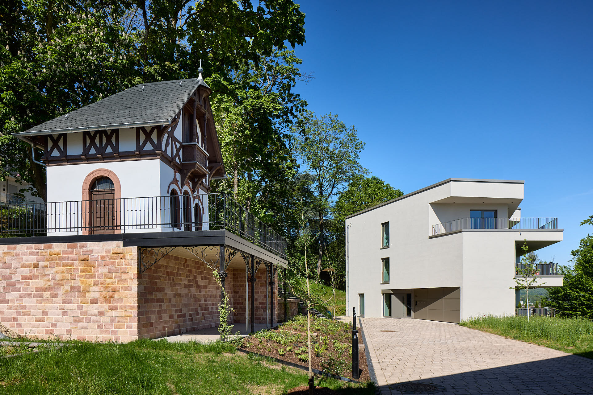 Seine Lage auf einer grünen Anhöhe mit historischen Straßenzügen bietet einen Ausblick über die Stadt. Dementsprechend hoch war das öffentliche Interesse. „Es gab schon viele Konzepte und Versuche, etwas aus dem Grundstück zu machen, die aber immer wieder scheiterten“, erinnert sich Simon Kosiol, Architekt und Partner beim verantwortlichen Büro BHK Architekten. Grund dafür war der sensible Umgang mit dem baulichen Maßstab sowie der Parklandschaft, der in den Entwürfen nicht die gewünschte Berücksichtigung fand.