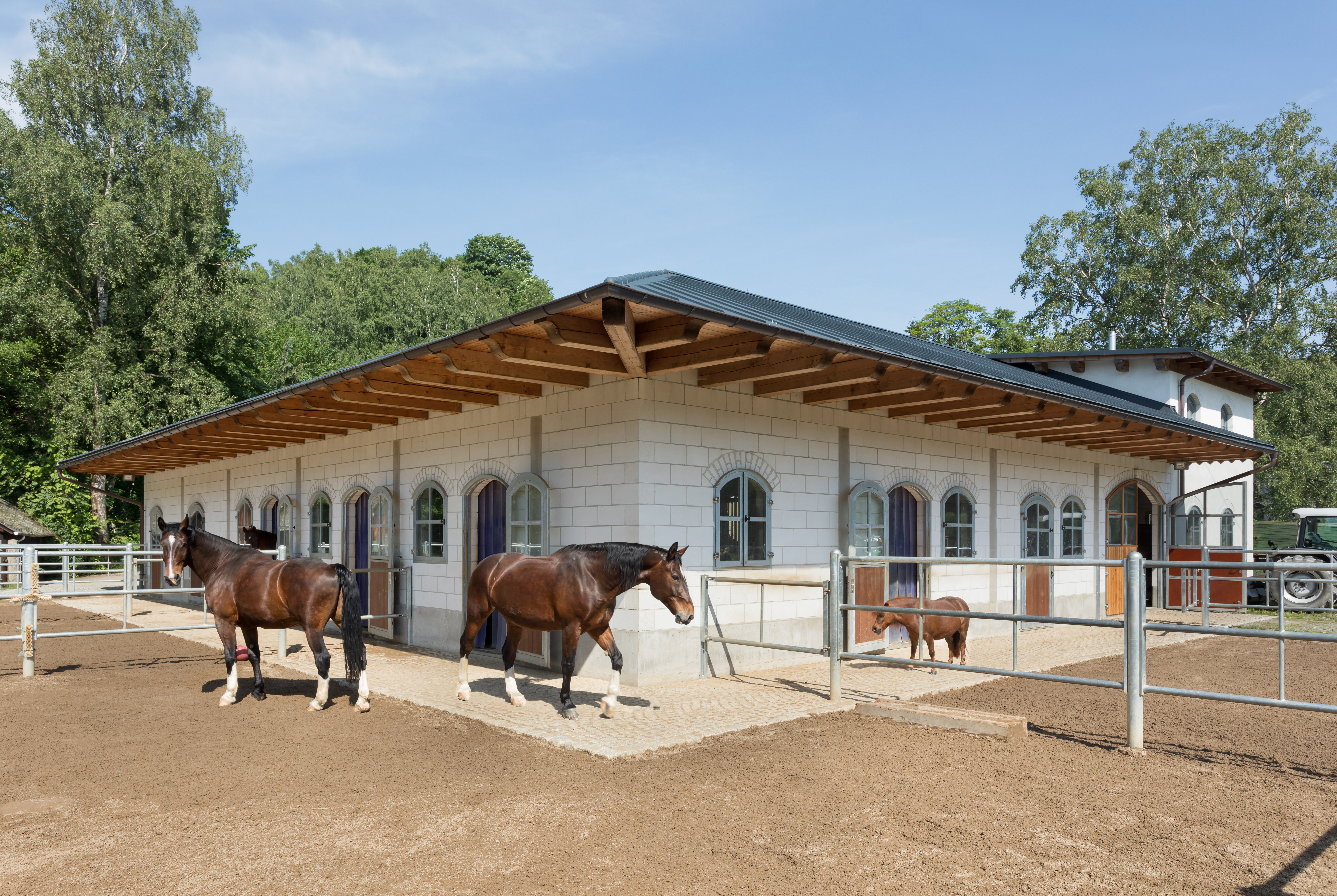 Ein Schloss aus dem 13. Jahrhundert zu besitzen bedeutet viel Freude, aber auch viel Arbeit und Verantwortung – zum Beispiel, wenn es darum geht, den Bestand zu erweitern. Die strengen Auflagen des Denkmalschutzes sind dabei stets zu beachten. 2014 beschlossen Volkmar Schneider und seine Frau, der historischen Anlage einen Stall für die eigenen Pferde hinzuzufügen, da sie mit der bisherigen Unterbringung der wertvollen Tiere in fremden Ställen nicht zufrieden waren.